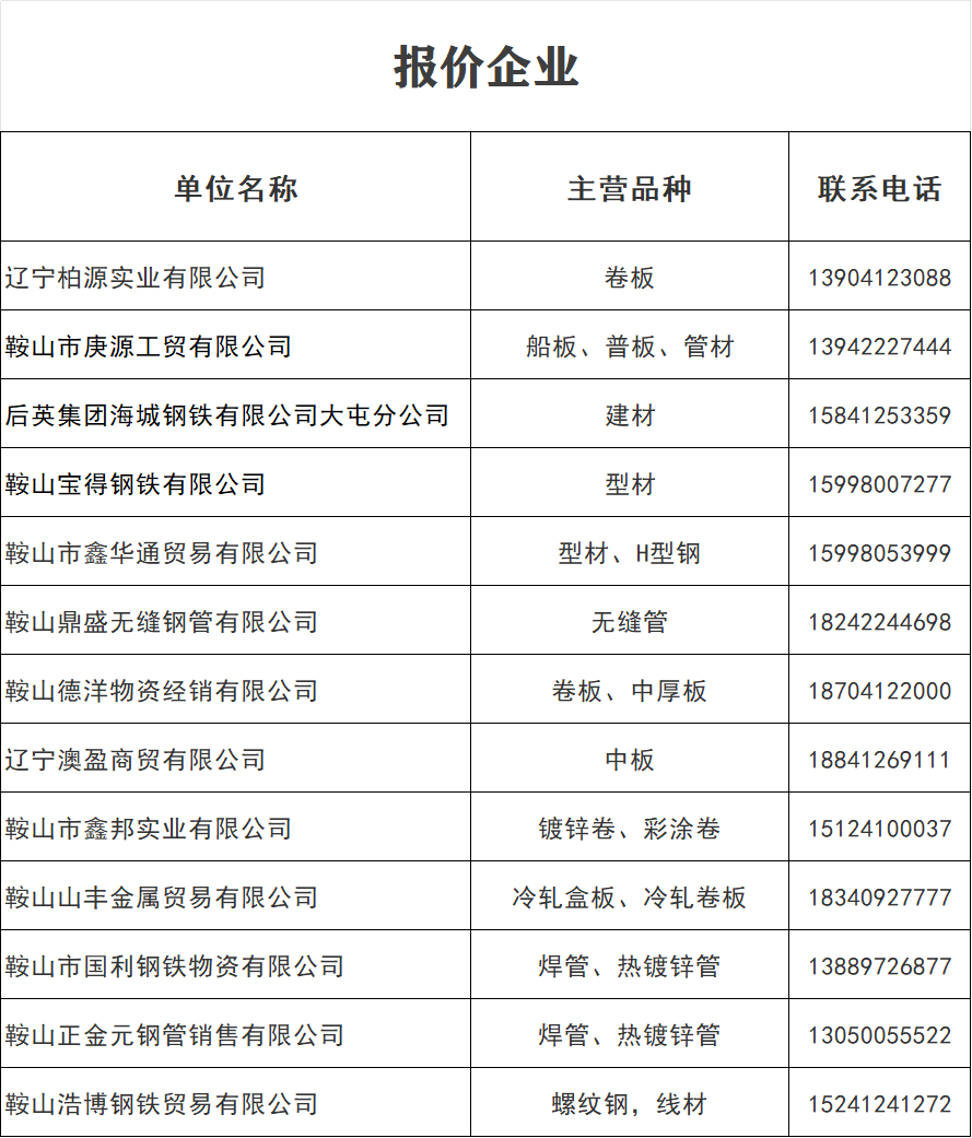 4月13日 鞍山地區(qū)鋼材價格表