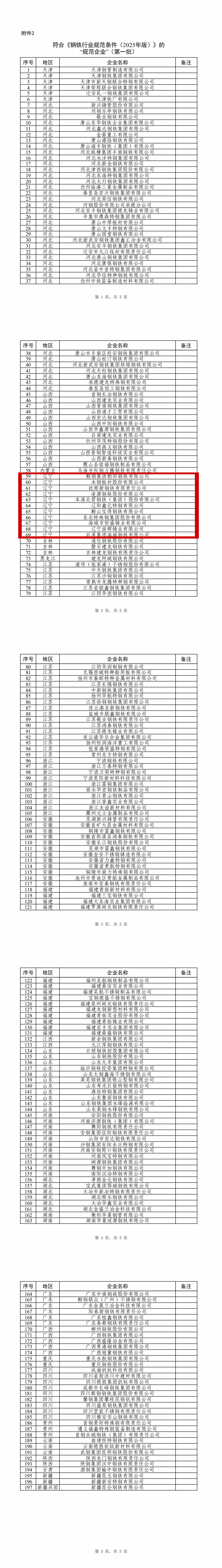 2.符合《鋼鐵行業(yè)規(guī)范條件(2025年版)》的“規(guī)范企業(yè)”(第一批)